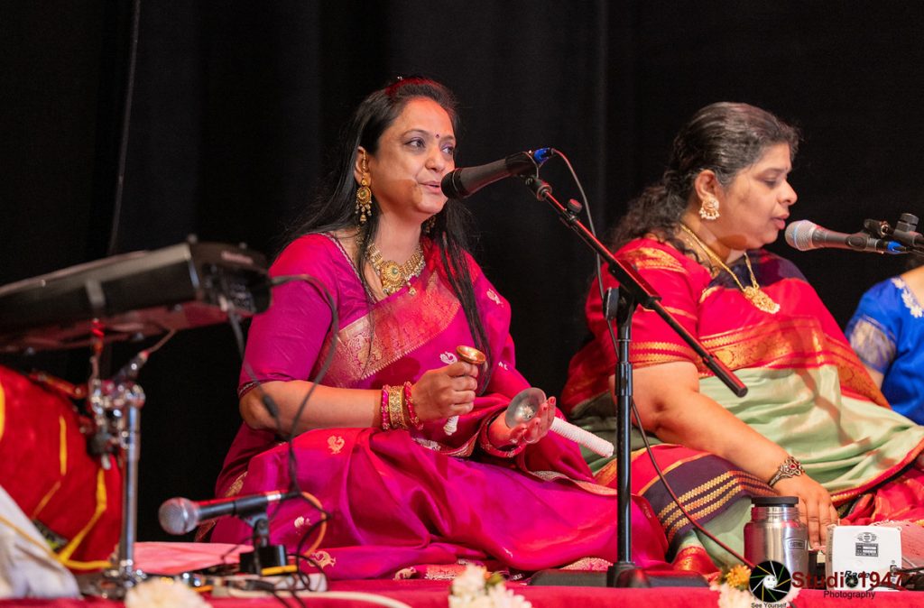 A complete Arangetram usually includes invocatory items, varnams, padams, tillana, and shlokas performed with live or recorded music. Traditionally, a live orchestra accompanies the dancer, including vocalist, nattuvangam (rhythmic recitation), and instrumentalists. The dancer performs for about 2–3 hours, demonstrating stamina, grace, rhythm, and expression.